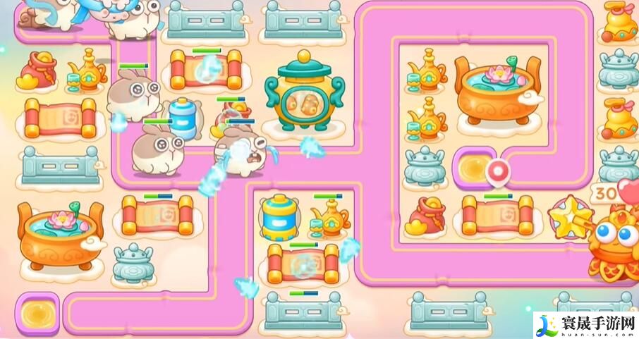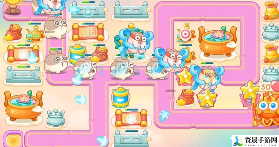 5、星星打丹炉,等左边最后一只呆兔快到传送点的时候,打荷花缸。