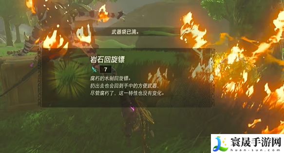 3、在这里是会得到岩石回旋镖,当然了接下来就是将这些怪物全都消灭,因为怪物很多,所以玩家们是需要多注意一下。
