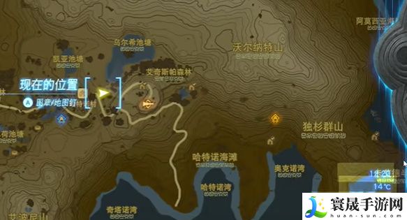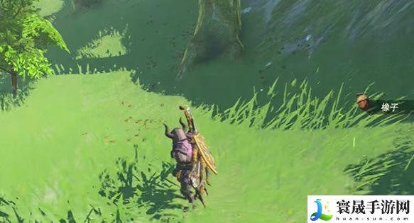 3、远处可以看见橡子的位置,然后是使用弓箭攻击,射中后就是可以过去收集这个橡子了,收集完成后就是回去找到多当茨,将橡子给他。