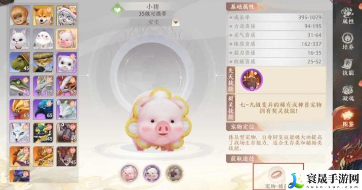 宠物里有一个小猪,随便打怪抓的那种,没有任何前置要求,唯一的要求就是需要玩家35级才能够带。