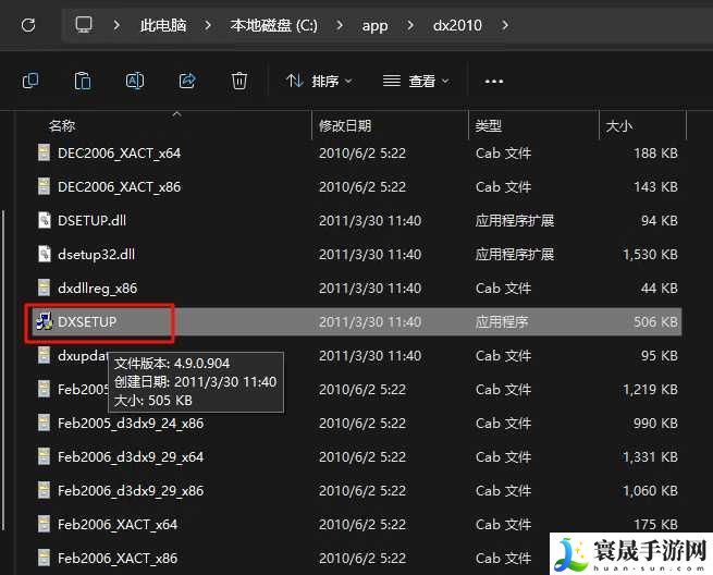 12、前往上一个步骤指定的安装程序目录,找到DXSETUP双击运行DirectX安装程序;