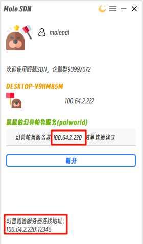 19、运行了palword联机服务的电脑上下载和运行MoleSDN,完成登录;