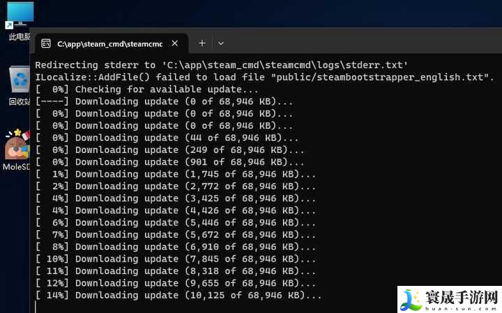 4、运行后会弹出命令行窗口,等待其自行完成下载和更新;