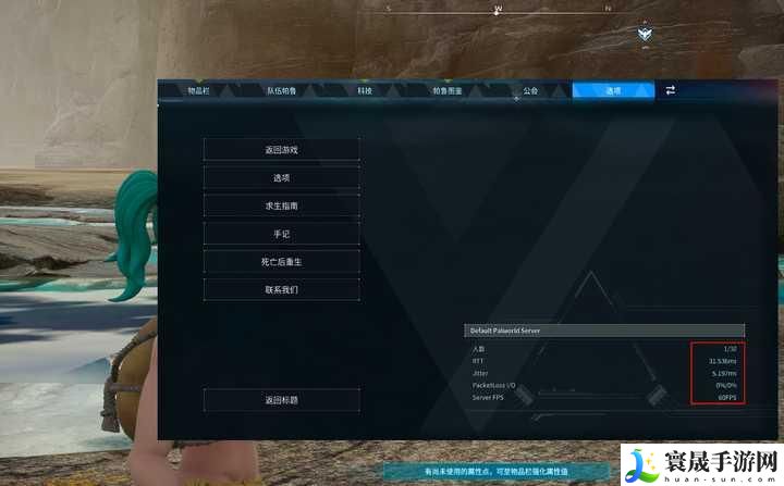 27、可以看到已经加入至前面搭建的服务器了,选项中能看到延迟、丢包游玩很流畅,输入服务器地址ip:端口号时注意:要用字母的半角冒号;