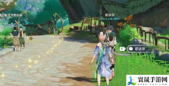 2、到了之后跟尼达尔对话就可以打听艾文的去向,然后跟着任务指引走,然后再跟农民贾汉对话;