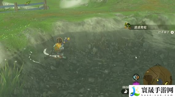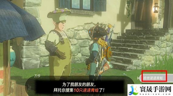 3、接着万作就是需要玩家去找到速速青蛙,当然他是不会承认是他要求的,接着玩家就是可以从右手边去池塘边上找到这个速速青蛙。
