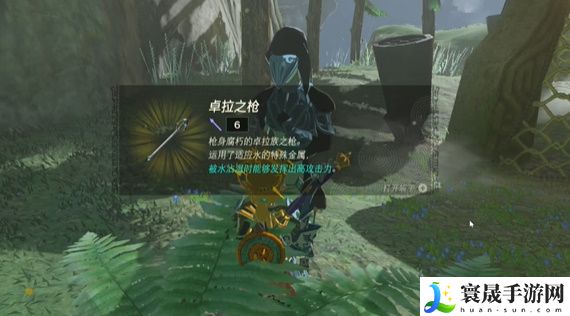 4、随后玩家就是可以获取到卓拉之枪这把武器,当然被水沾湿后是会提示攻击力,最后领完武器后这个任务就完成了。