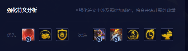 这套阵容不算特别吃专属符文,墨菲特的守护者斗志最优,可大幅度增加阵容续航能力,其次索尔的冲击速度(增加控制)、亚托克斯的暗裔同化(增强坦度),其他体系内能增加群体收益的符文也都可以考虑。