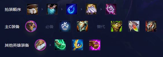这套阵容刚需一个吉祥物转职,如果3-3选秀后还没有就不要强玩,阵容出装过渡思路与机甲怪兽类似,可考虑不胡的时候转型。