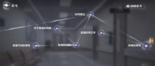 ①玩家正常收集所有的线索后,点击思考得出"拼凑的真相"。