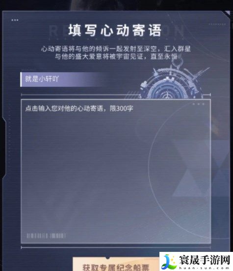 3、我们进行登录并绑定账号之后,填写心动寄语就能获得专属纪念船票。