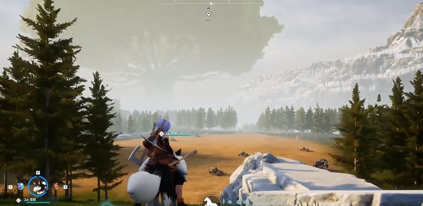 第一个是位于疾旋融这里,这个点位离出生点比较近,玩家来到这个位置之后可以看到有boss,避开boss直接往前走,然后穿过前面这个木桥,在这个地方会有一些金属矿,前期金属矿资源是很重要的,所以这里很适合建造前期家园,这个地方的风景也很好,并且只有一座木桥可以过去,属于易守难攻的地形。