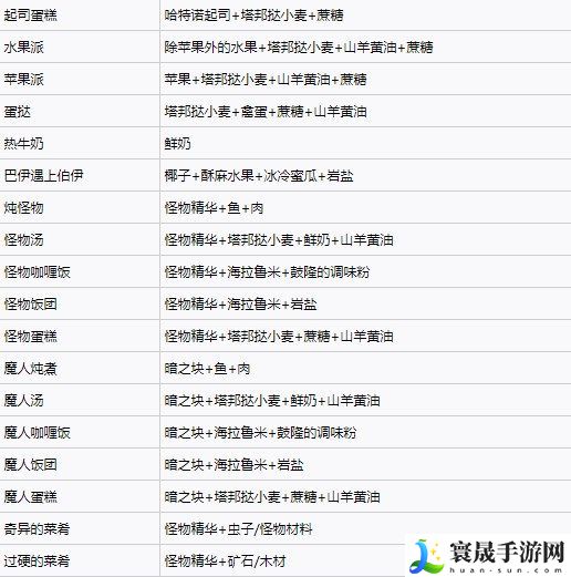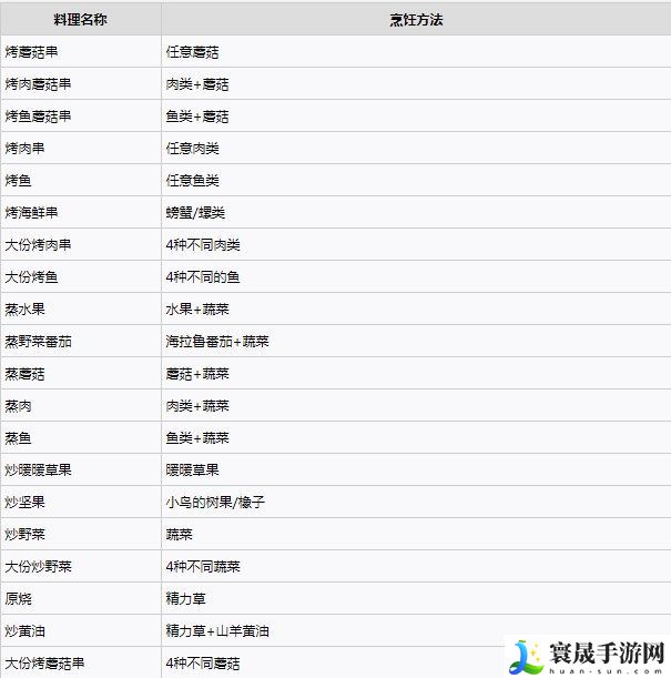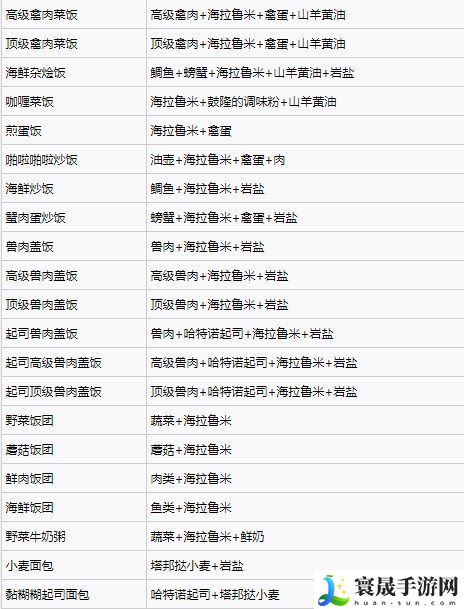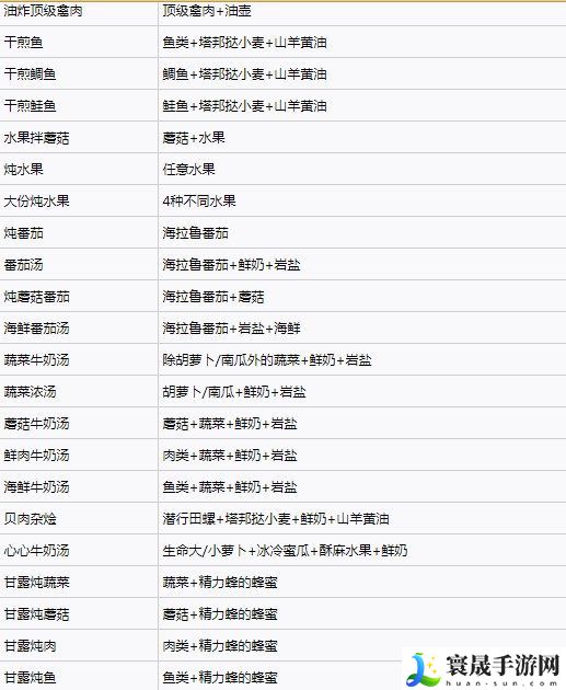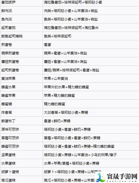 塞尔达王国之泪料理配方大全: