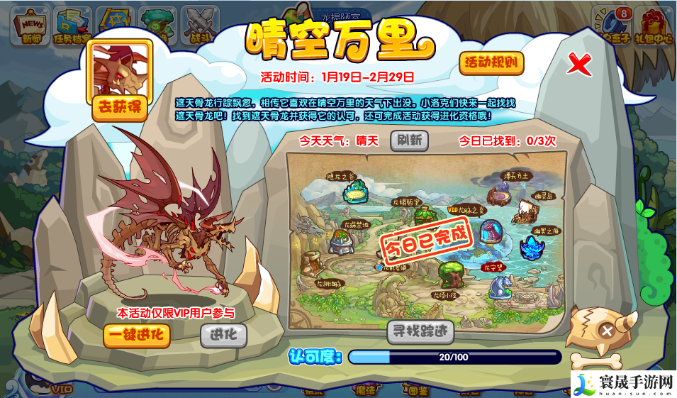当认可度满100点,就可以开启:遮天骨龙 超进化!本活动为VIP专属。