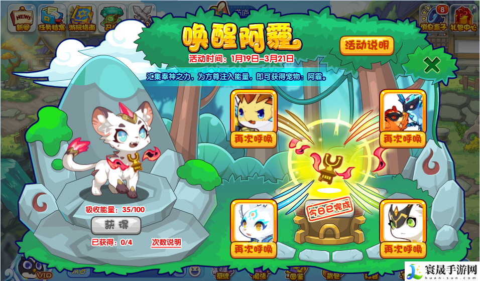 当吸收了100点能量,就可以召唤一只:阿霾!活动将重置,可继续参与。