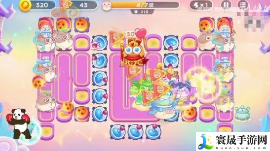 4、期间还是有粉兔,粉兔一定要锁头的,不然会漏掉,玩家可以在中间都补满雷达,路口多放保龄球,也可以加一些毒针,手速跟不上的可以调成1倍数。