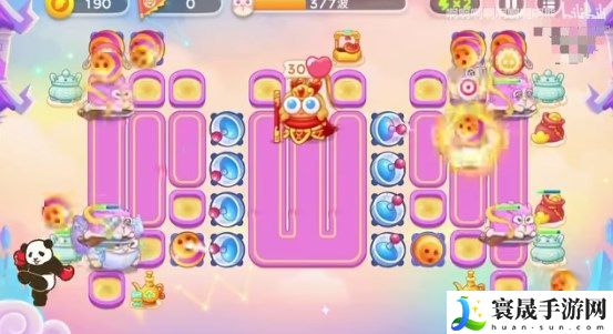 2、之后右侧开始打下面的钱袋,这里还是会有粉兔的,记得所有打掉,没有粉兔的时候就先清理周围的道具,左右两侧可以交替清理,清理完都放雷达,左右上角两侧都放保龄球,路口也可以放保龄球;