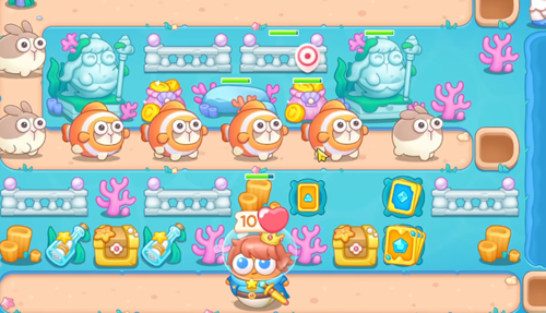 1、海的闺女第15关共有8波怪,开局我们可以建造卡牌在右边部分的位置,第一波来临之前可以先建造几个先对付过去。