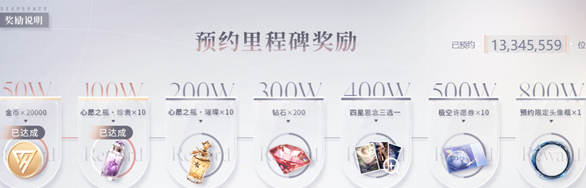 个人预约奖励:金币x10000 、钻石x100、体力x60、预约限定称号