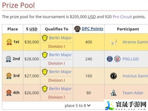 奖池是五十万美金,一共是二千七百点 DPC点数,胜利者可以得到二十万美金和五百点 DPC点数。