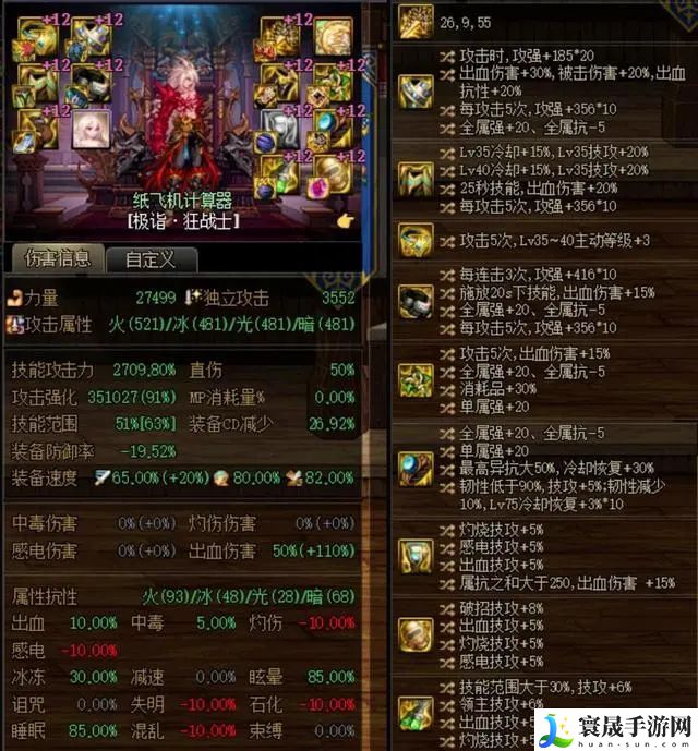 【武器】狂龙,贴膜“5技攻35和40CD-15、6技攻范围12”、龙焰贴膜“不能触发异常的技攻”,如果都能触发,选择“出血10%”。