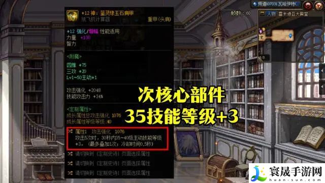 【2】次核心装备“蓝灵护肩”,1个核心词条“攻击5次时,30秒内35-40主动技能等级+3”。