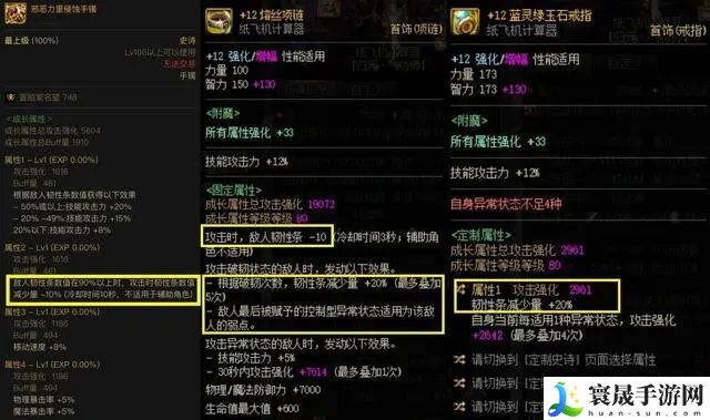 【手镯】邪恶力量,“敌人韧性条90以上时候,攻击时减少10%韧性”。