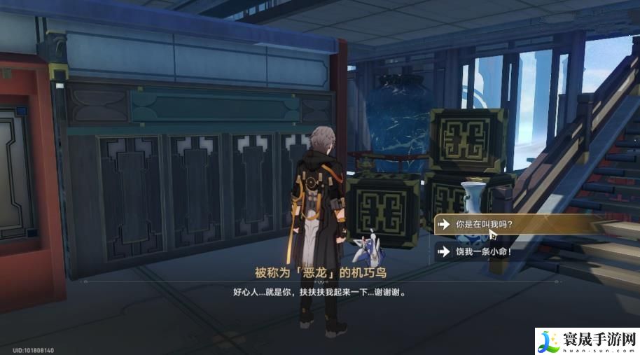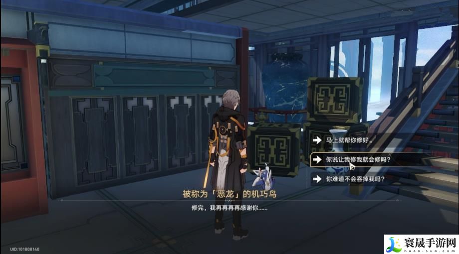 1、玩家到达下图的位置之后可以看到一个机巧鸟,剧情过完,可以跟一只称为恶龙的机巧鸟对话;