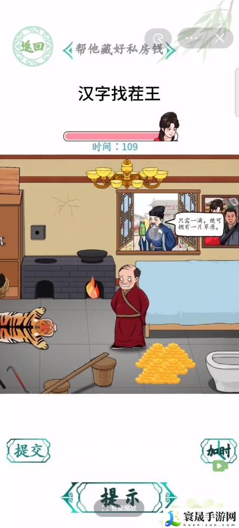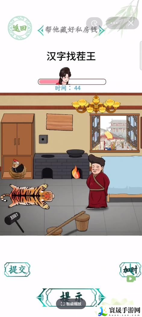 汉字找茬王男人私房钱需要我们帮大郎藏好自己的私房钱,比图简单的办法是先找有洞的地方,然后把钱藏起来,然后再各种家具上度金,下面就来看看橙子是如何藏私房钱的吧!