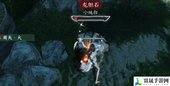 2、之后按照任务指引,到达谪仙岛如下图所示的位置挖【龙胆石】;