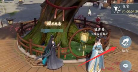 3、和田田对话结束之后,走到凌秀秀树下,点击拾取前面的发光处物体。
