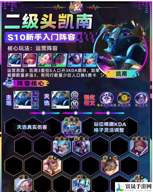 金铲铲之战二级头凯南阵容推荐-s10二级头凯南阵容出装站位一览