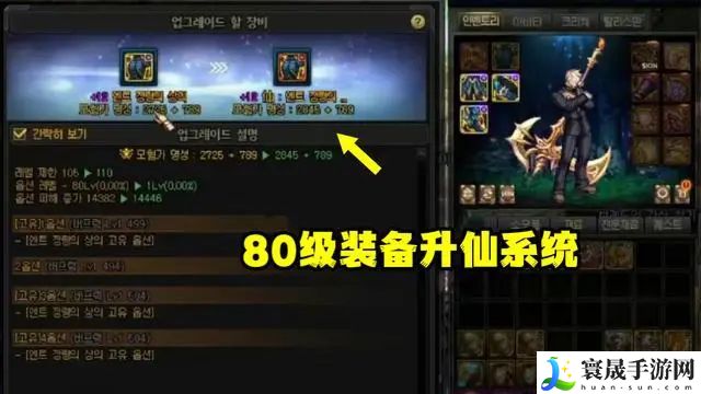 词条等级满级80的装备,可以使用“升仙系统”,消耗“75新材料、300金绿柱石、20万金币”,就能升级为“仙1装备”。