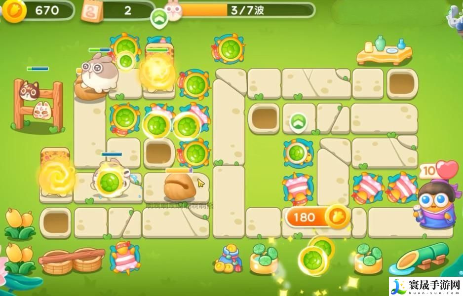 保卫萝卜4夏日垂钓第16关大概率会刷到乌龟或保龄球,所以这一关我们就用这两个来打就可以了,第16关的开图思路是先打左边的道具再往右边扩展,最后我们用更多的乌龟来打就可以轻松通关了!