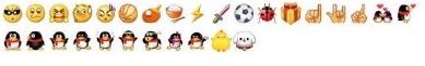 酷、饥饿、汗、奋斗、疯了、糗大了、左哼哼、哈欠、吓、西瓜、篮球、乒乓饭、闪电、刀、足球、瓢虫、差劲、爱你、