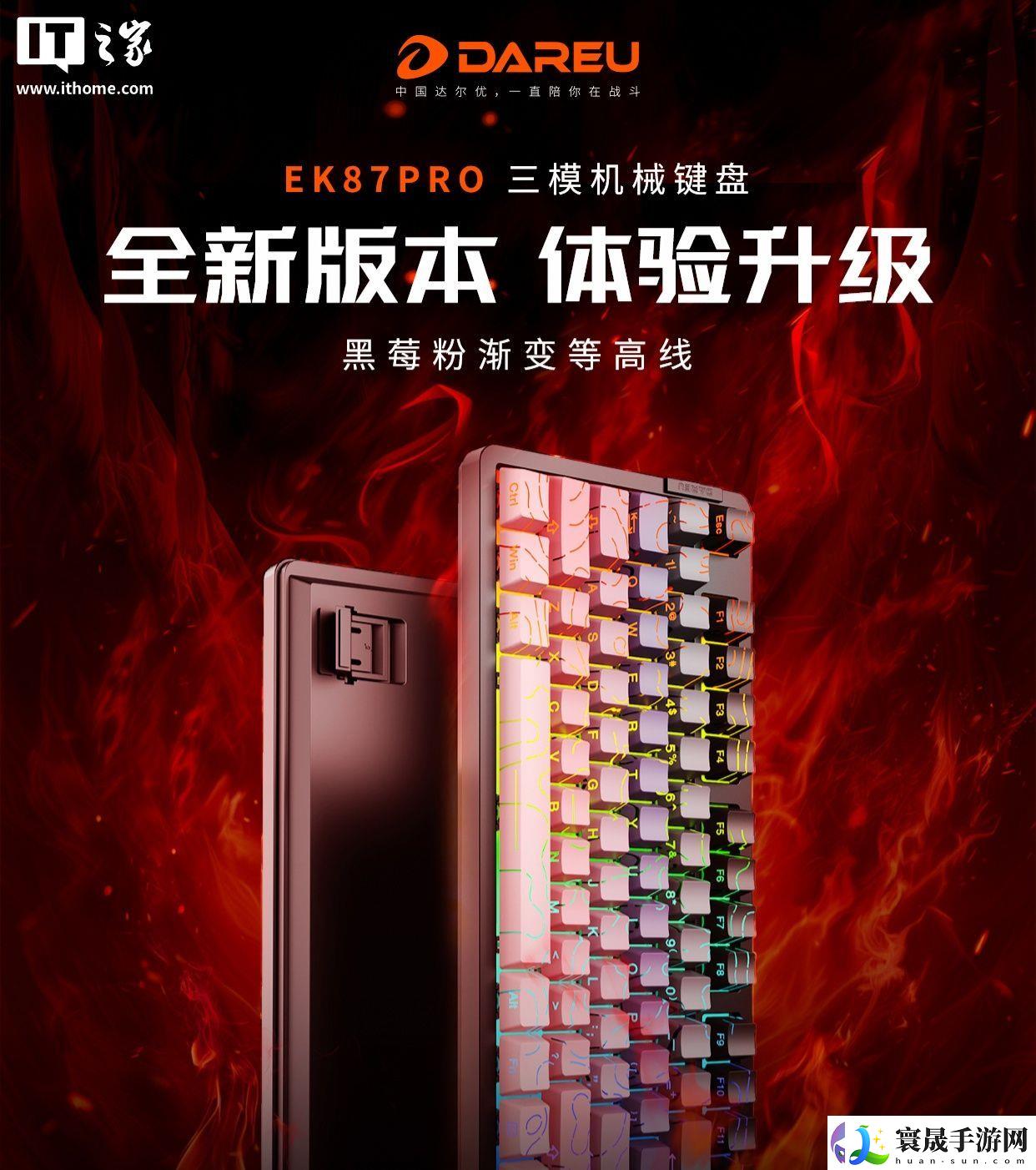 本站 2 月 25 日消息,达尔优 EK87Pro 机械键盘新增“黑莓粉渐变等高线”版本现已开售,搭载“桃 C 拿铁轴”,定价 259元、首发 239 元。