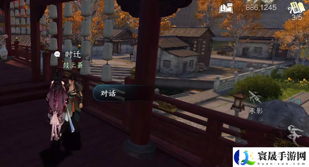 2、根据剧情提示,前往汴京886.1245找到时迁并对话,对话结束后获得道具“钱袋”。