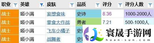 姬小满的前两款皮肤是口碑不错的,带有白嫖福利性质的妄想食味更是突破了八分门槛。相较下后两款史诗皮肤的口碑一般。