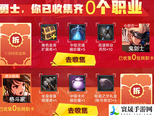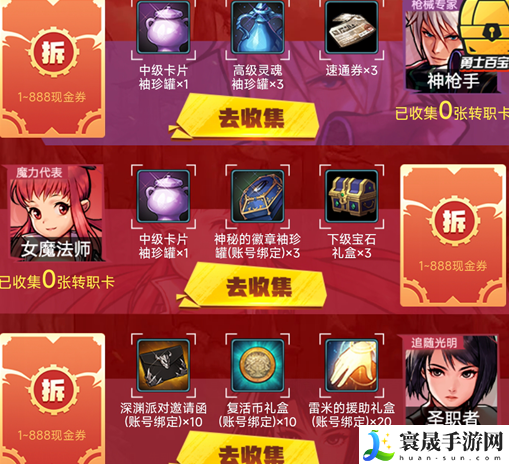 6、集齐一套转职卡就能获得一次抽奖机会。