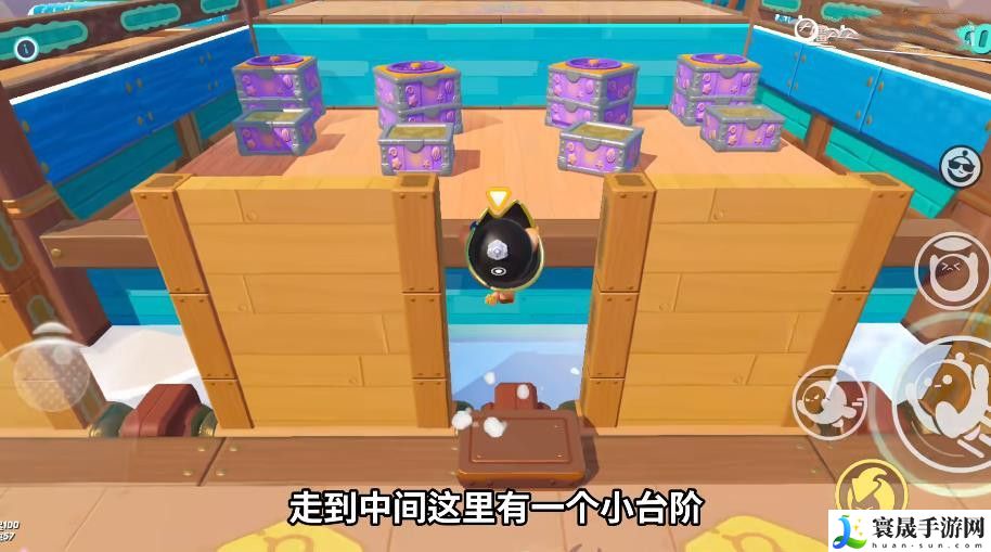 4、前面又想骗我推东西,我偏不,先走台阶,踩一脚之后,来到两船中间。