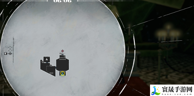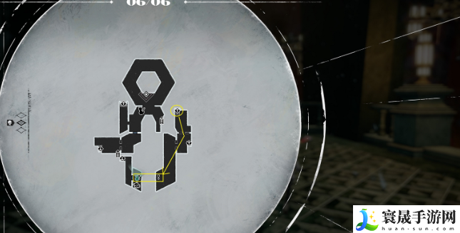 然后再去有结晶的房间前按照图中的位置对应的最底层,黄圈处使用圣印项链,这个黄金雕像会弯腰。