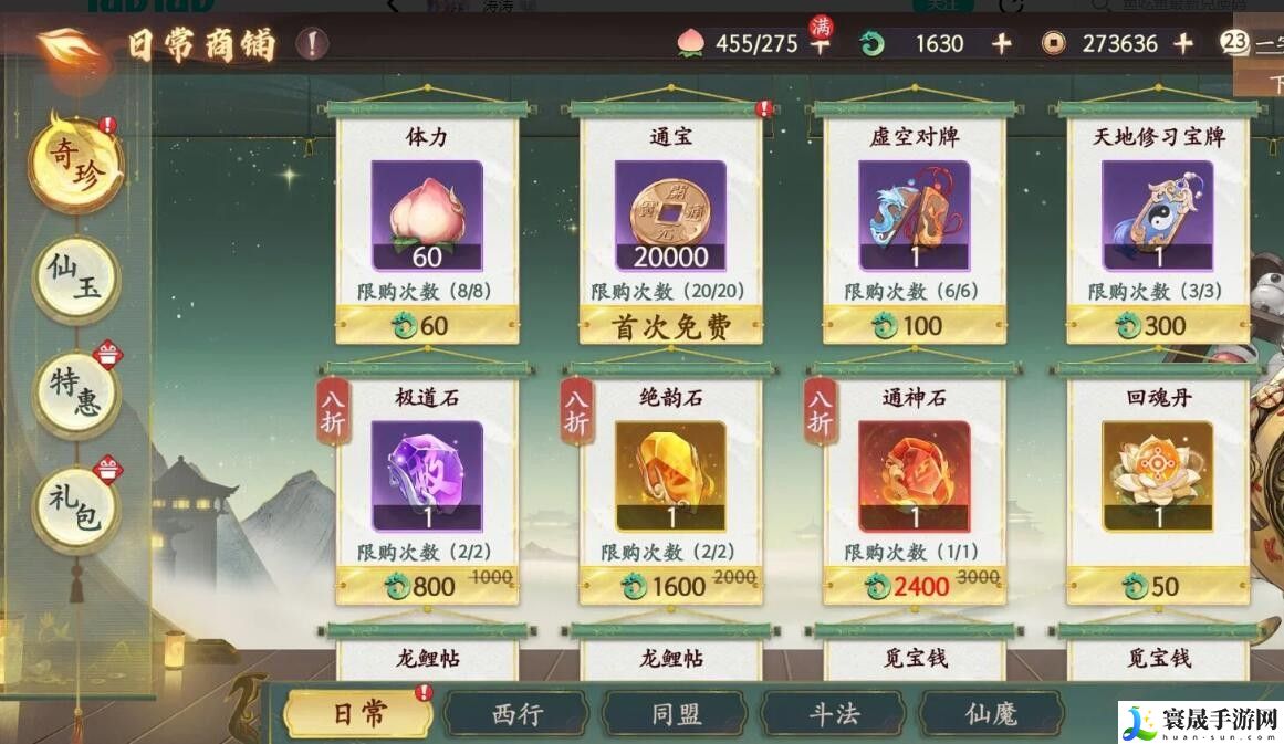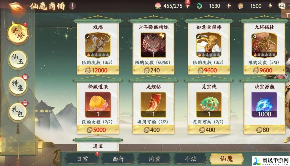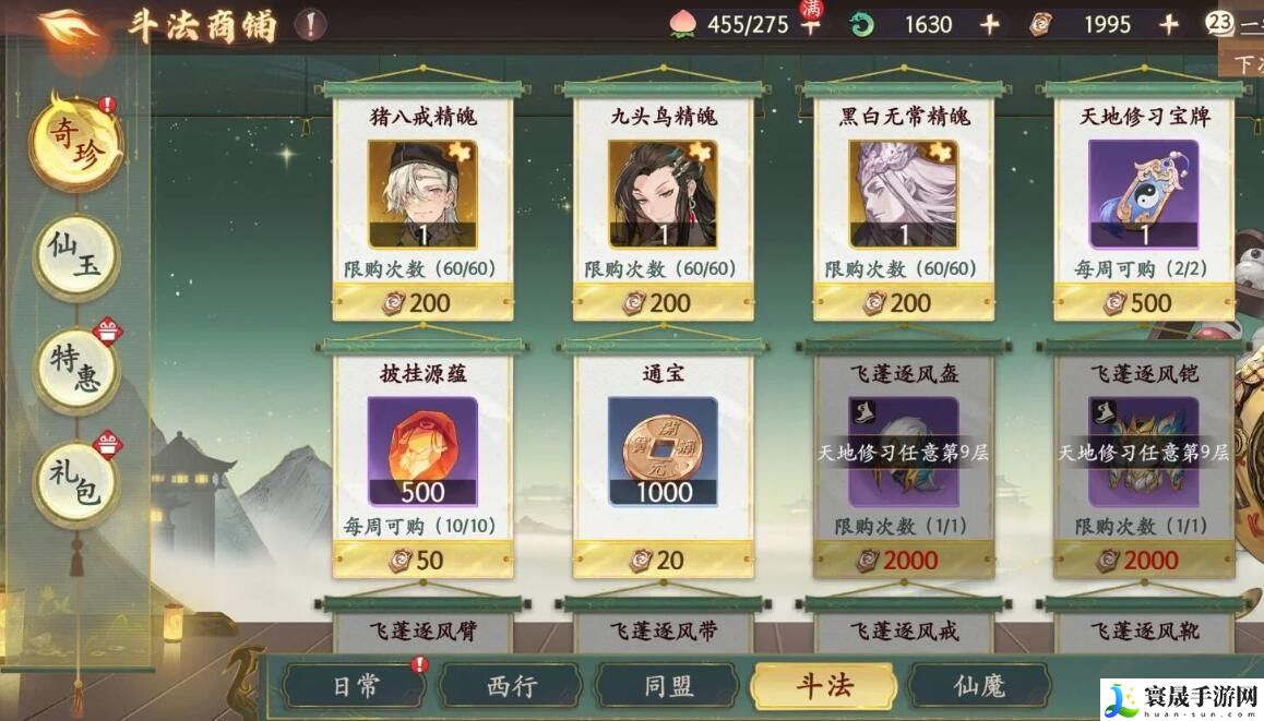 斗法商铺同样每月刷新一次。优先兑换每周限购的【天地宝牌】和【装备强化材料】。然后根据阵容需求兑换角色精魄,内测共有 3个角色:猪八戒、九头鸟、****,这 3 个角色中后期就业率都很高。九头鸟和****除抽卡外获取渠道少,可优先兑换,白板九头鸟当破军工具人也很香。橙装我们通关13 层后也不缺橙色装备,且套装效果各品质都一样,装备重要的是词条。
