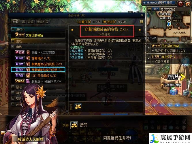 1、角色达到60级后即可在任务手册的角色任务内接取:穿戴辅助装备的资格任务并完成,即可开启左槽穿戴栏