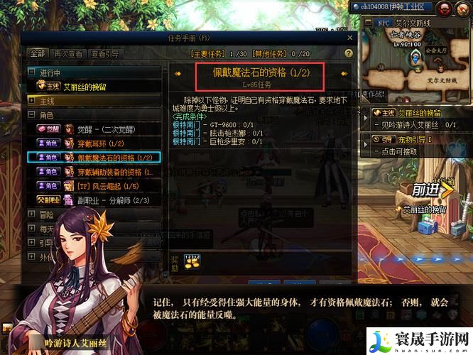 2、达到65级后接取:佩戴魔法石的资格任务并完成即可开启右槽穿戴栏