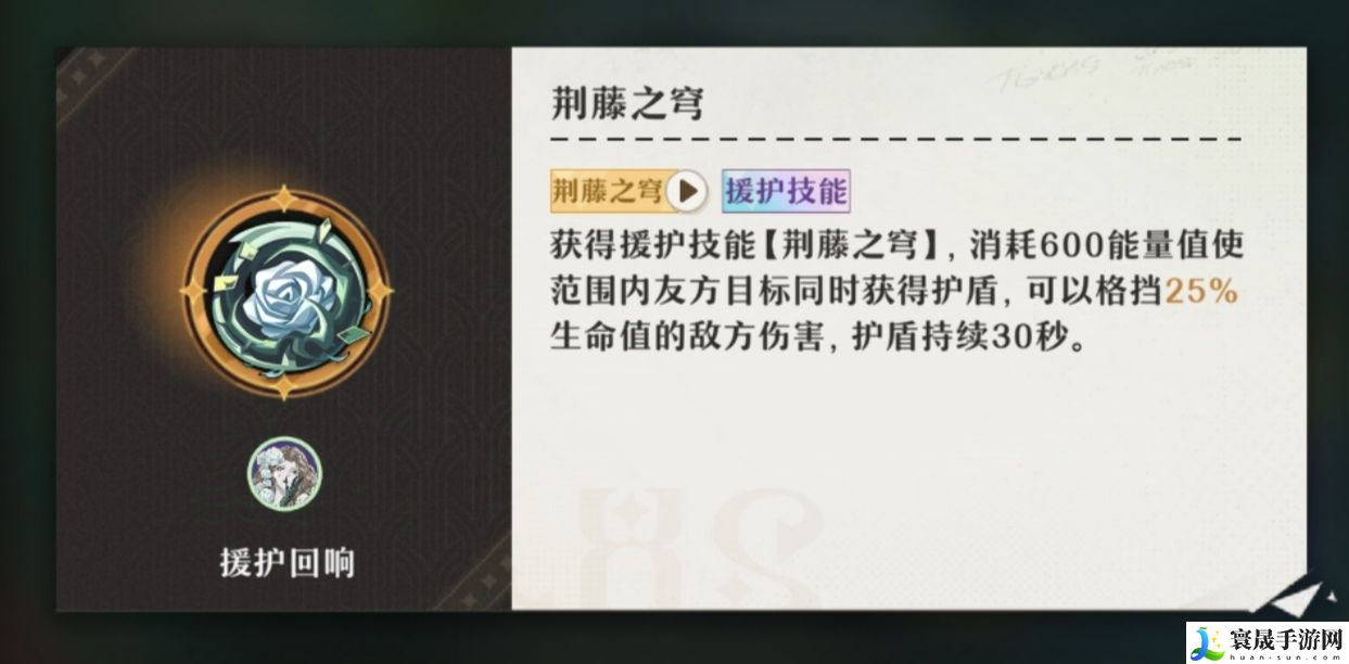 援助技能首选“荆藤之穹”,次选“医学奇迹”。