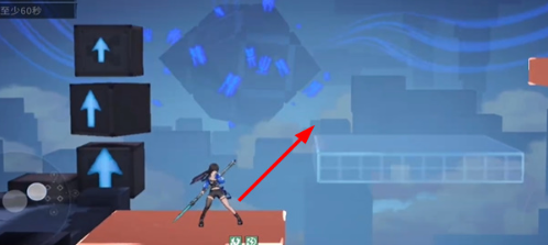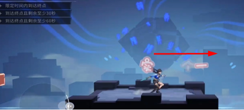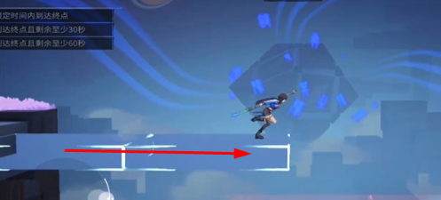 1、我们进入关卡以后就可以先来到这个蓝色位置,我们要是想过去的话是可以冲刺再两段跳就可以了。