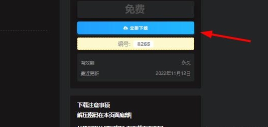 3、在游戏介绍页面我们点击右侧的【立即下载】,会显示我们已经成功获取下载地址。