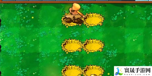 4、接着我们在深坑中使用锤子将木桩打进深坑就可以出现全新的植物,我们将植物放置在对应的位置即可阻拦僵尸的前进。