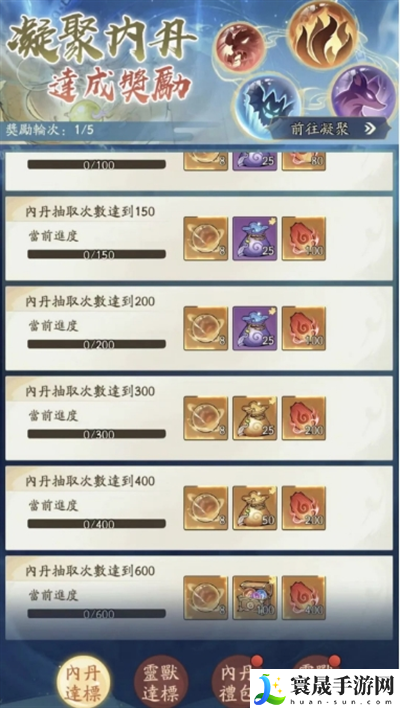 2、内丹轮回是消耗本源丹,然后获得返利奖励每轮是600本源丹共计5轮,每轮返利59个本源丹,加上每天送的两个7天是14个,所以第一轮最少需要600-59-14=527个本源丹