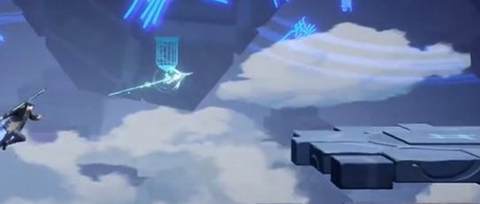 7、上去后再下落,勾住钩锁,即可完成挑战。